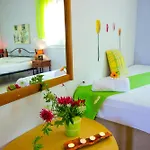 A pousada de Thásos dispõe de pátio e varanda, juntamente com controle de temperatura para uma estadia confortável. O quarto inclui casa de banho separada, banheira e chuveiro, secador de cabelo e lençóis de banho.